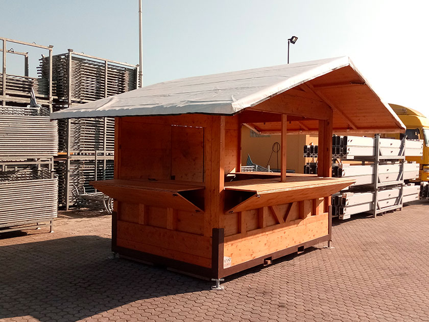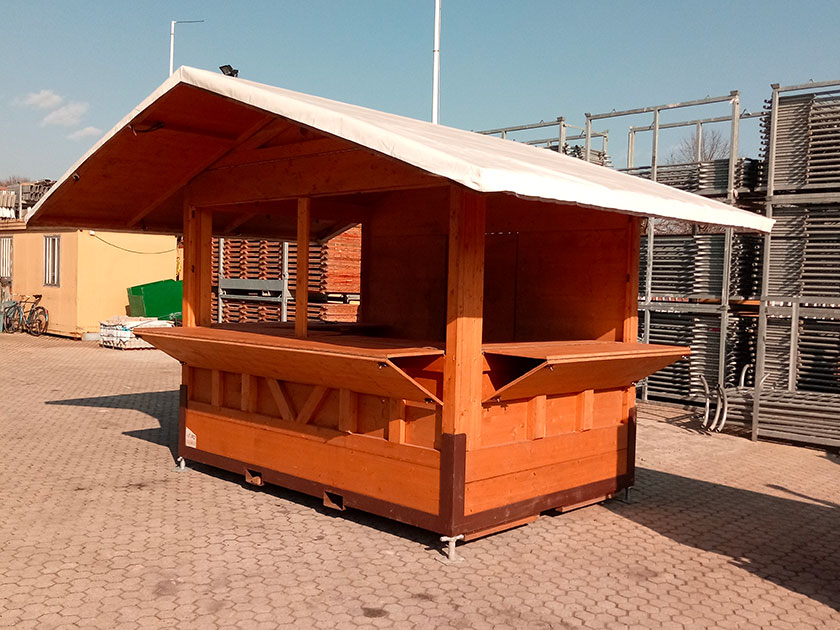 Casette in legno con dimensioni 3 x 2m, compressive di impianto elettrico e certificato ignifugo.